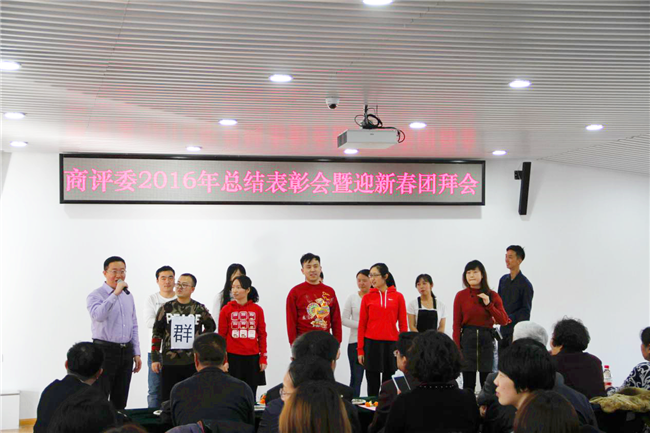 红梅迎雪放,金鸡踏春来。在2017年新春佳节即将来临之际,1月19日,商评委举办2017年迎新春团拜会。商评委干部职工200余人参加会议。商评委退休老同志、曾经在商评委工作过的同志以及商标审查协作中心党委副书记盛保晨、机关党委群工处处长马洪涛应邀出席会议。