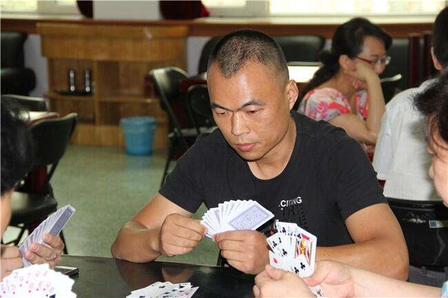 本次升级比赛采取“不抄底”、“1小时定输赢”的方式,是技术、配合、运气的综合比拼。第一轮比赛中,黄家华同志领衔的8对选手依靠稳定的发挥、高超的技术和默契的配合冲出重围,迈进50强,进军第二轮。第二轮比赛紧张激烈,扣人心弦。经过激烈的角逐,黄家华和赵江涛、徐琳和耿娟娟、卢榆和张娜娜、戴艳和李硙、汪冬平和肖苏共5对选手闯入25强,杀入第三轮。