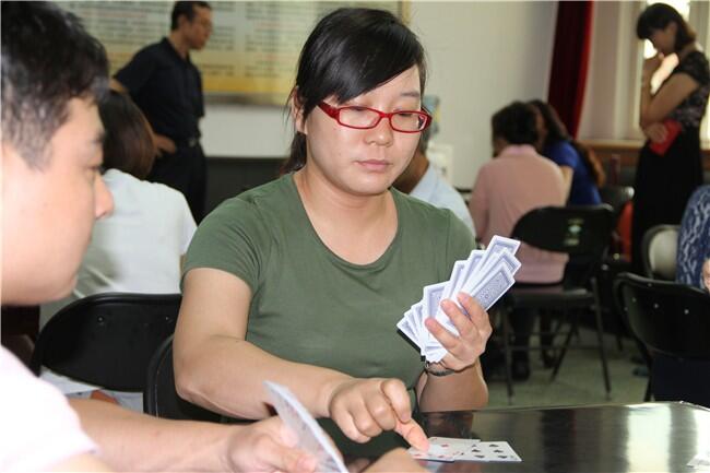 比赛虽结束,笑语常相伴,和谐乐中聚。本届运动会的扑克升级比赛,所有参赛选手联袂上演了一出出精彩的牌艺大战。在牌局中大家奉献的是技术实力,展现的是团队配合,收获的是和谐快乐。“欢笑、祝福、赞美”这一串串优美而动听的音符在赛场上久久回荡……
