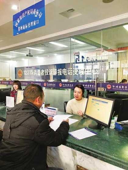 在郑州商标受理窗口,前来办事咨询的人络绎不绝。工作人员有问必答,耐心细致地提供服务。