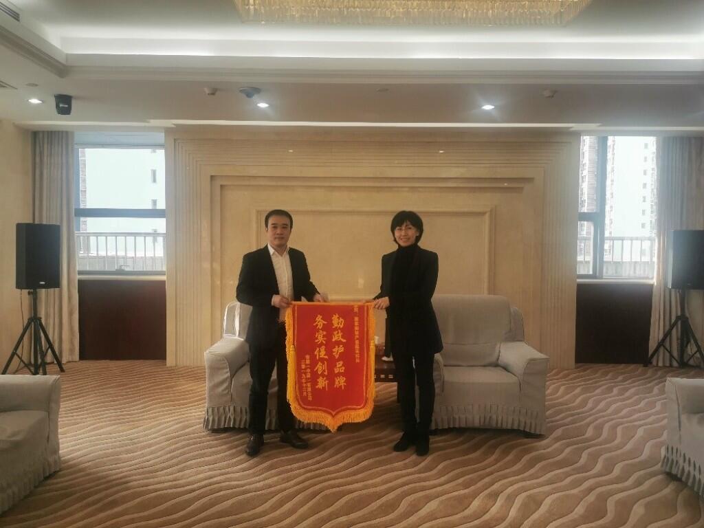 12月25日,安踏(中国)有限公司派员专程到中国商标大楼向商标局赠送锦旗,对商标局践行国家知识产权战略,保护自主品牌,营造良好营商环境的工作表示诚挚感谢。