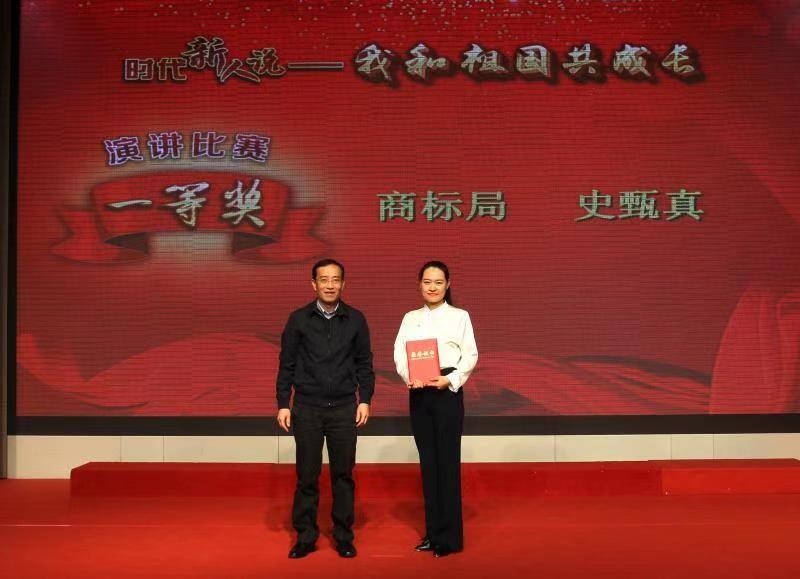 10月28日,国家知识产权局直属机关党委举办了“时代新人说——我和祖国共成长”主题演讲比赛,商标局审查事务三处史甄真同志荣获一等奖。