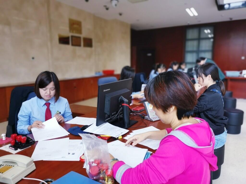 大厅内人来人往但井然有序,申请人取号后即可在舒适的接待座椅上等待叫号,然后去相应的服务窗口办理业务。申请人如果有疑问,可以去服务台咨询,也可以查询办事指南。在便民写字台前,设有各种书式的填写范本,还配备了老花镜、放大镜,方便申请人快速办理相关手续。打印机、复印机等办公设施均可免费使用。