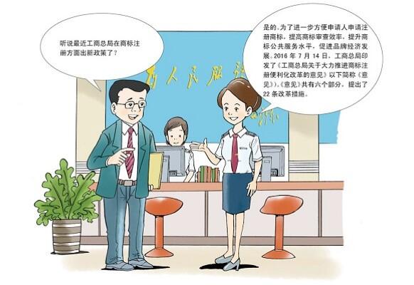 ◎2016年7月14日工商总局发布《关于大力推进商标注册便利化改革的意见》,从拓展商标申请渠道、简化手续优化流程、完善审查机制提高审查效率、加强信用监管、实施商标战略5个方面提出22条改革措施。